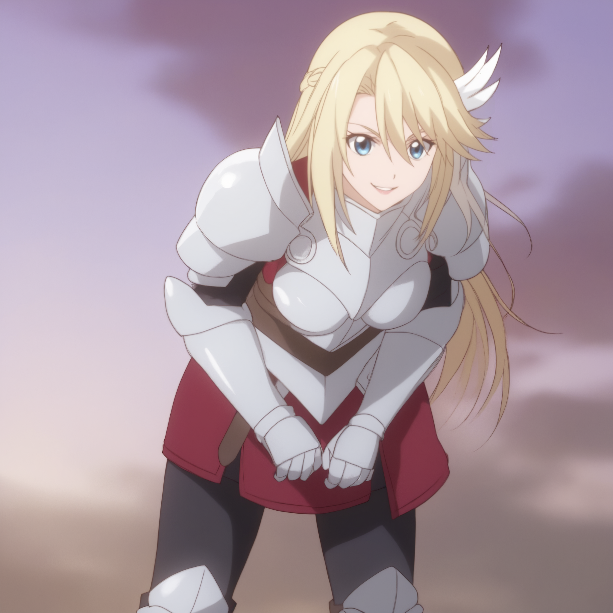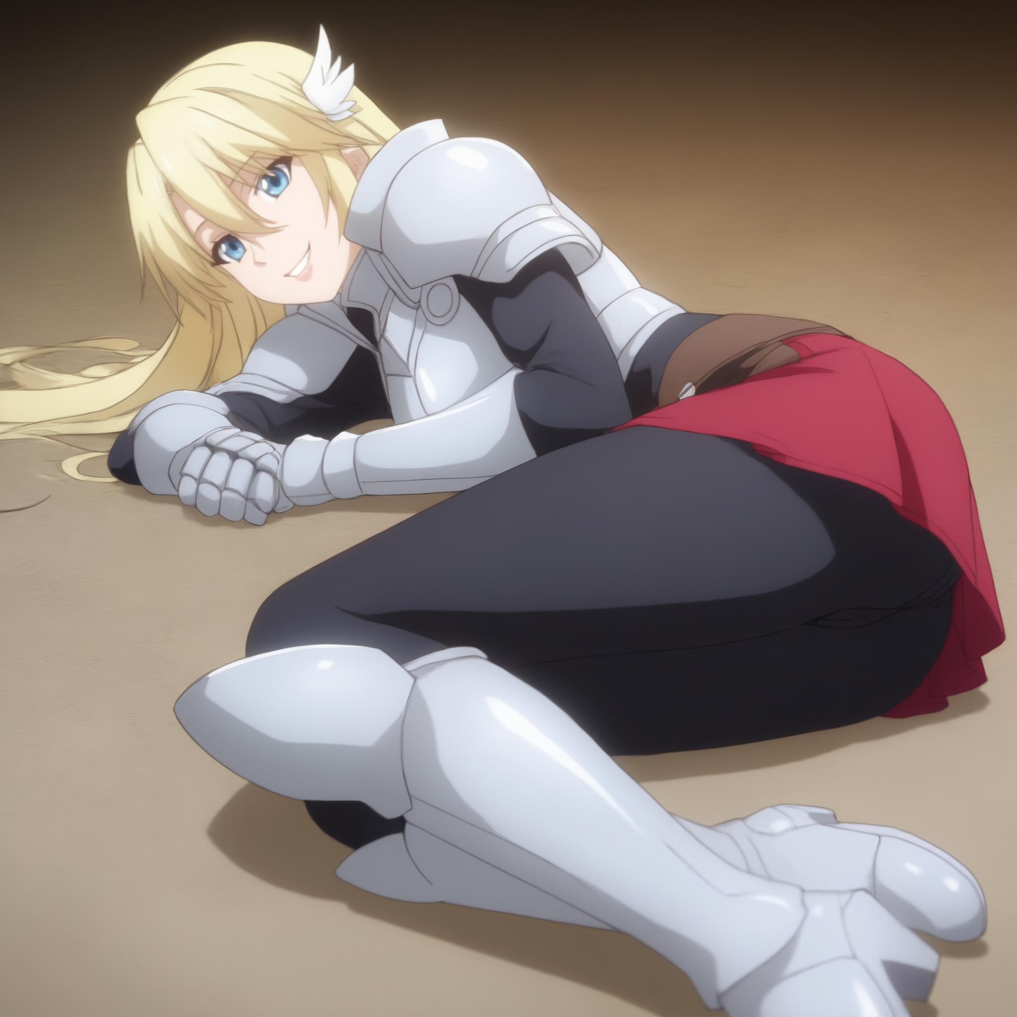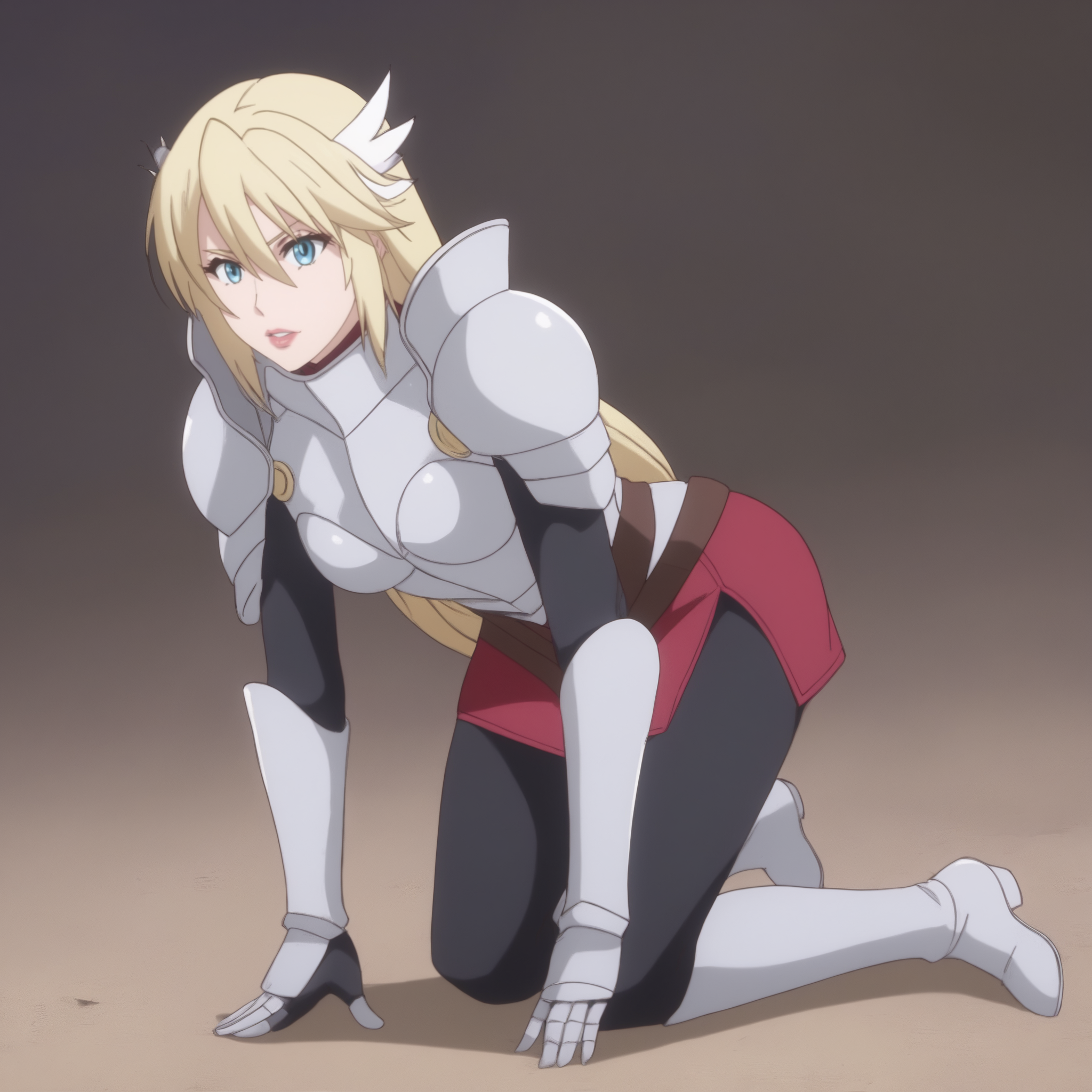 knight, armor, breastplate, shoulder armor, pauldrons, red skirt, gauntlets, black pantyhose, boots,