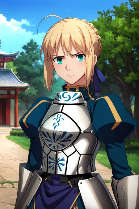 主要触发词是 artoria pendragon \(fate\),你可以通过额外使用这些触发词来指定她原作中的三种服装:armor、dress 或 suit。有时仅使用 suit 无法正确生成她的制服,此时使用以下附加提示可帮助修正:grey shirt、black necktie、black gloves、pant suit 和 ponytail。你也可以通过使用 braid 和 hair ribbon/ribbon(可选 hair bun)或 ponytail 来指定她的发型。