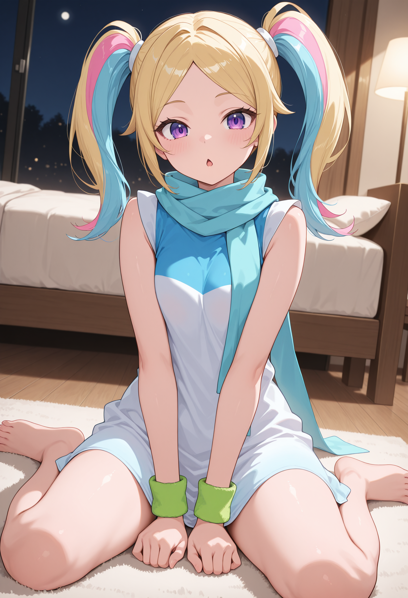 보라색 눈, 긴 머리, 다색 머리, 금발, 분홍색 머리, 파란색 머리, 트윈테일,