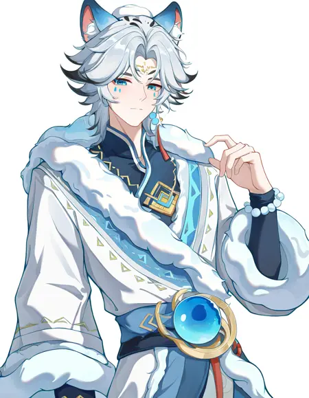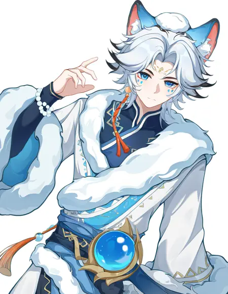 fur trim,animal ears,long sleeves,jewelry,facial mark,animal ear fluff,