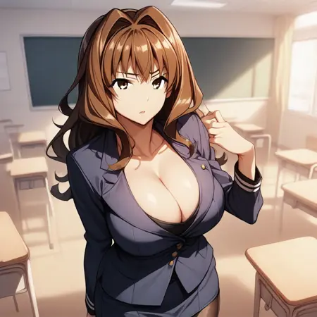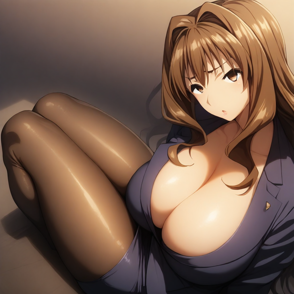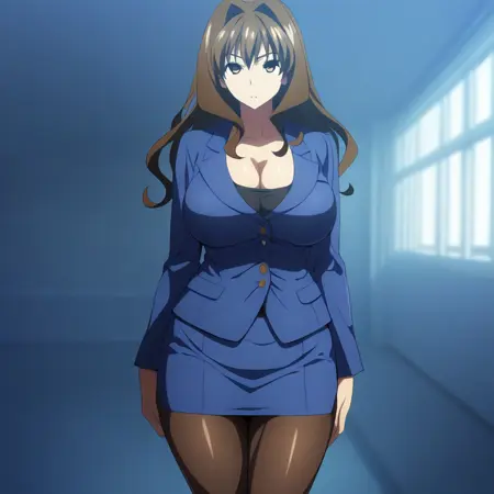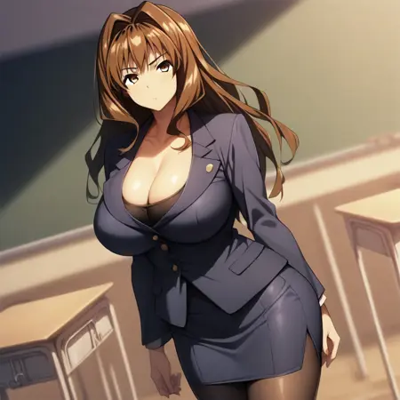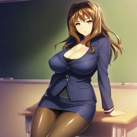 Inagi Ai, long hair, brown hair, intake hair, brown eyes, principal clothes, pantyhose, big breast, pencil skirt, skirt suit,