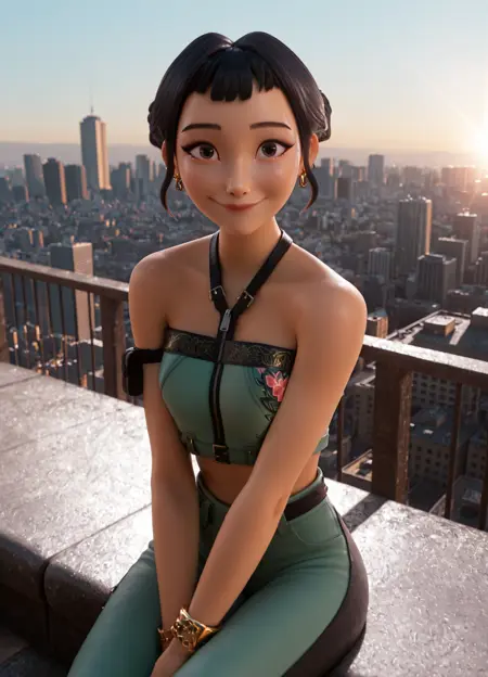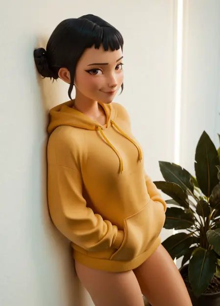 zoeykpop1121, black hair, earrings, hair buns, short hair, bangs, brown eyes,