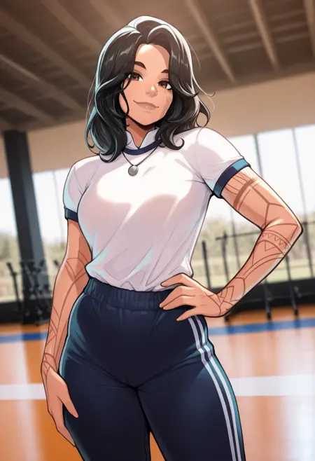 캐릭터 태그: 얼굴 문신, 검은 머리, 긴 헤어, 갈색 눈, 팔 문신