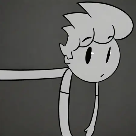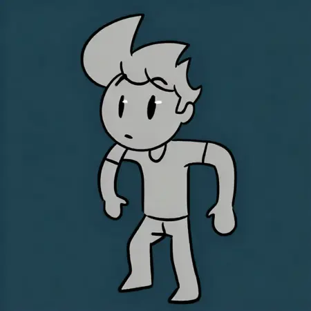 标准(点状眼睛):Lixian Illus,单人,1个男孩,灰色皮肤,黑色椭圆点眼,灰色头发,灰色上衣,灰色裤子