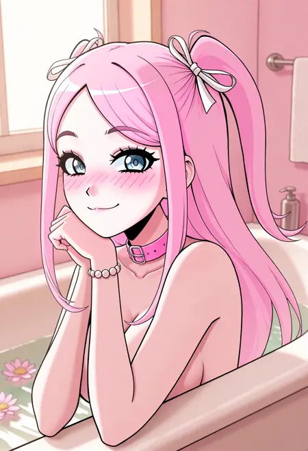 기본 태그: nastyalt, 1girl, solo, 분홍색 머리, 양측 올린 머리, 긴 머리, 머리끈, 측면 머리카락, 큰 가슴, 파란 눈, 앞머리,