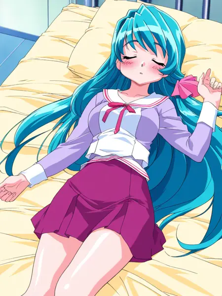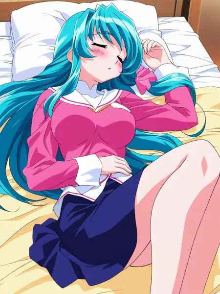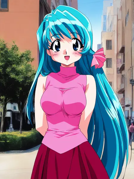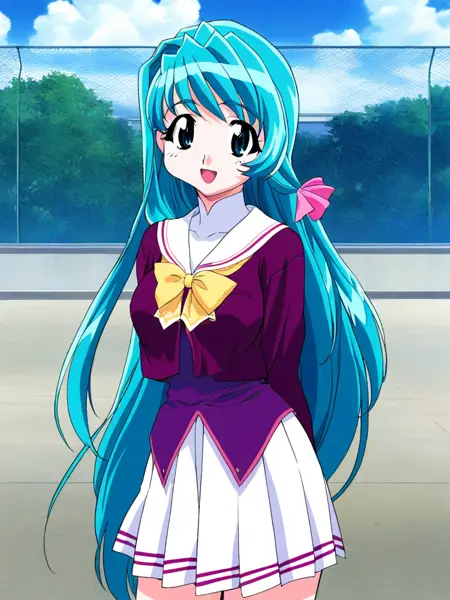 Kashima_Rika, 1girl, solo, long hair, aqua hair, blue hair, blue eyes, large breasts,