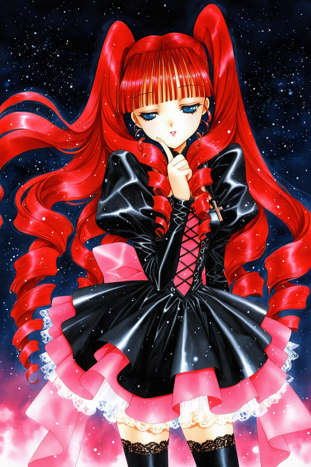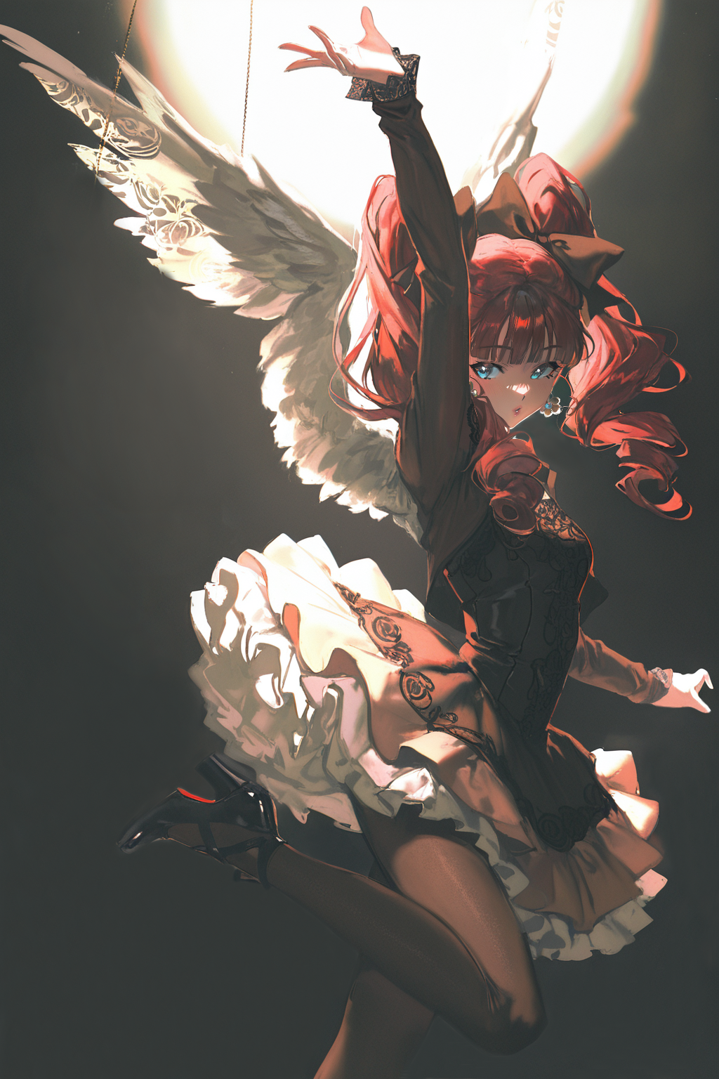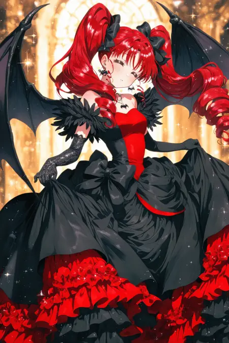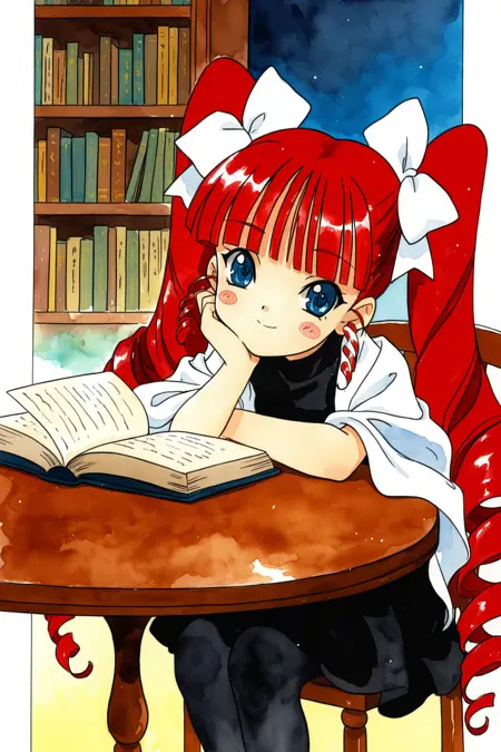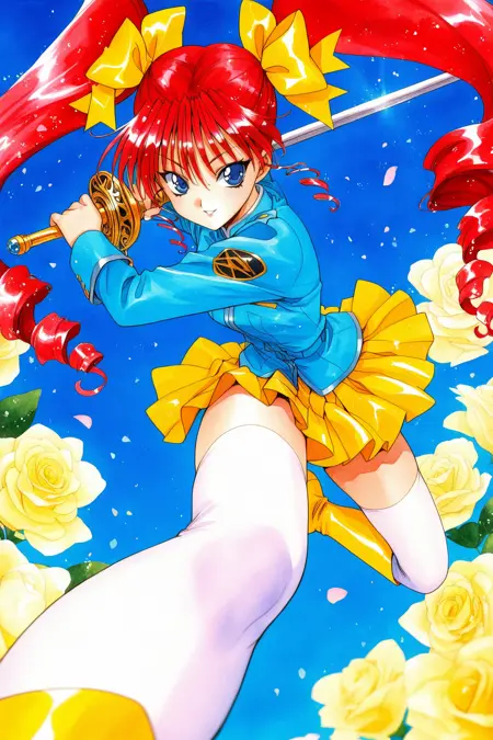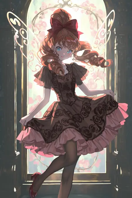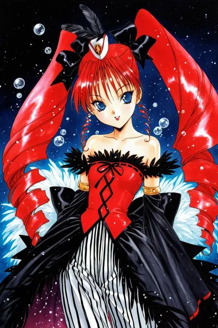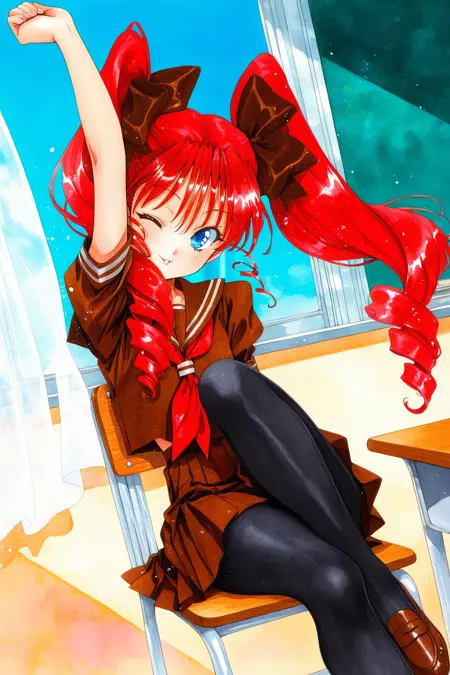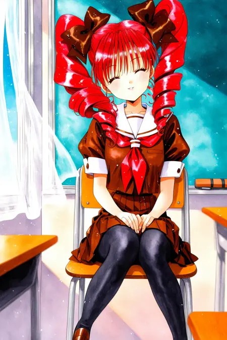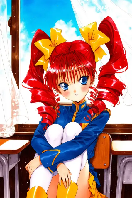 | 训练词汇 | retro artstyle, 1990s (style)已复制! red hair, hair intakes, long hair, twintails, long bangs, choppy bangs, curly sidelocks, twin drills已复制! uniform, high collar, white collar, black dress, gold trim, pleated skirt, grey skirt, grey thighhighs, zettai ryouiki已复制! feather boa, elbow gloves, red gloves, red dress, frills, layered dress, half boots, red boots, leopard print boots, brown neck ribbon, brown hair bow, brown feather boa, high heel boots, bare shoulders, sleeveless dress已复制! white socks, socks, puffy short sleeves, black skirt set, white cuffs, white corset已复制! blue one-piece swimsuit已复制! yellow skirt, pleated skirt, blue uniform, gold trim, white belt, yellow buckle, long sleeves, holding okamochi (container), yellow boots, knee boots, high collar, black hair bow, blue sleeves, white gloves已复制! cross-laced dress, two-tone dress, black dress, pink dress, layered dress, juliet sleeves, long sleeves, black sleeves, leather dress, leather sleeves, medium breasts, black thighhighs, lace trim, strappy heels, red shoes已复制! turtleneck dress, black dress, juliet sleeves, long sleeves, long dress, torn clothes, feather trim, hair bow, black bow, above-cleavage cutout, black bridal gauntlets, arm ribbon, purple ribbon, bat wings已复制! angel wings, spread wings已复制! blue shirt, open jacket, hooded jacket, light blue jacket已复制! |
