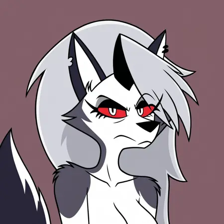 <lora:Helluva Boss - Loona The Hellhound - Seiiartworks Version:1>,loona (helluva boss), furry, anthropomorphic wolf, anthro girl, canine girl, seiiartworks style, thick outlines, red eyes, red sclera, silver hair, long hair, bangs, large wolf ears, fluffy tail, white and gray fur, loona_Seiiartworks_style,