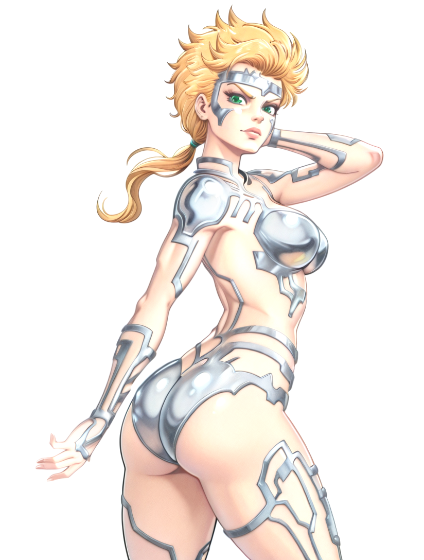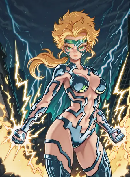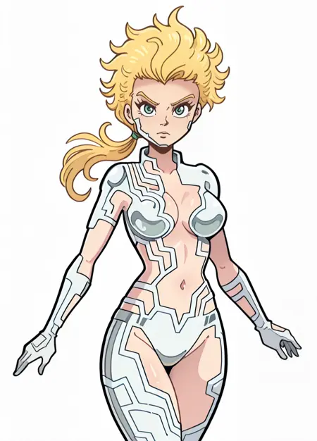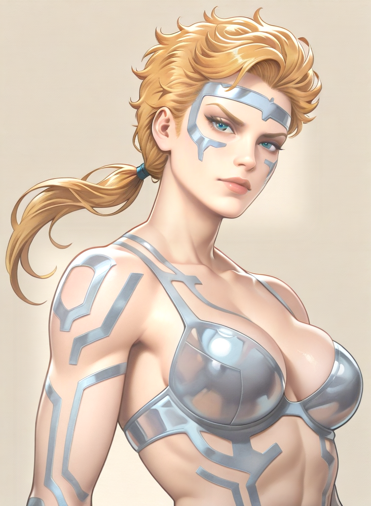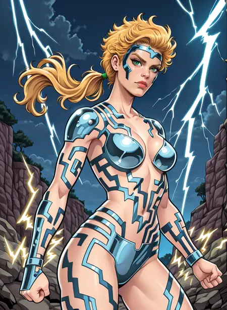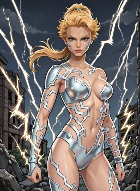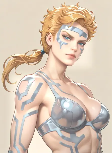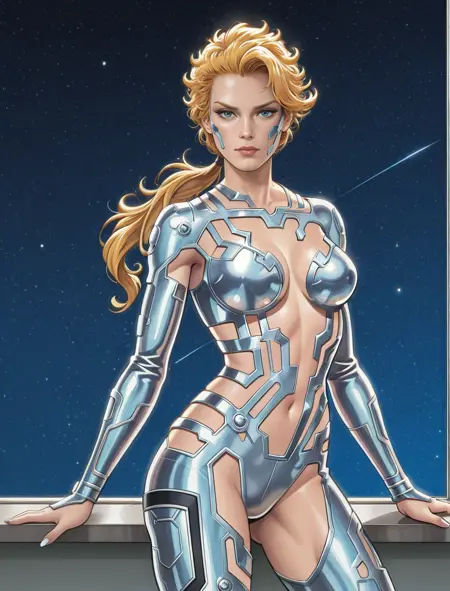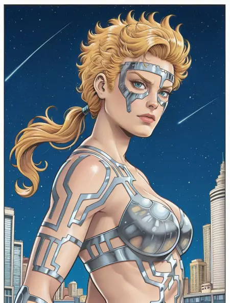 该LoRA对她的服装复杂细节的还原并不一致(但漫威的画家们也同样如此)。值得注意的是,下巴部分通常缺失。强度通常需要高于1,但这会导致风格烧毁,因为所有内容都基于旧漫画扫描。
