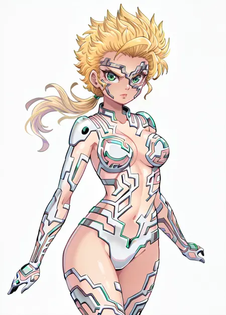 触发词: qbcb、金发、绿眼、单人、1girl、中等胸部、长发、马尾
