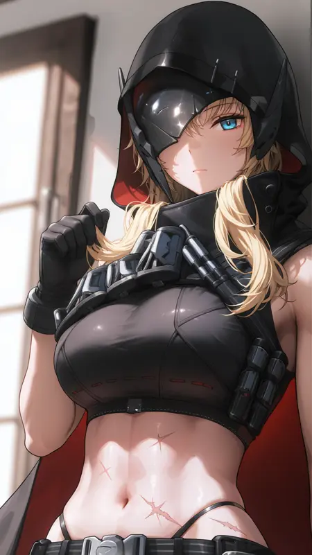 예시 프롬프트: 긴 머리카락, 파란 눈, 금발, 큰 가슴, 흉터, 복근, 얼굴 흉터, 근육질 여성, 복부 흉터, 다리 흉터,