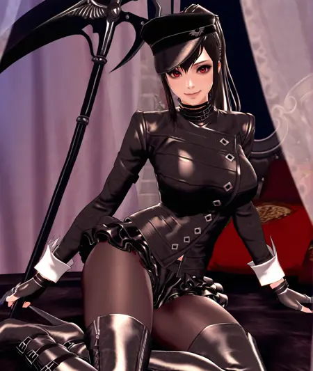 | 학습된 단어 | SuccubusQueen, 1girl, solo, long hair, large breasts, black hair, red eyes, ponytail,복사됨! black gloves, black skirt, miniskirt, fingerless gloves, black footwear, black jacket, high heels, black pantyhose, black headwear, buttons, mask, turtleneck, thigh boots, high heel boots, cuffs, mouth mask, leather jacket, holding scythe, stiletto heels, black theme, leather boots, belt boots, frilled skirt복사됨! elbow gloves, leotard, high heels, lips, torn clothes, underboob, demon girl, demon horns, knee boots, tiara, bat wings, gauntlets, bridal gauntlets, demon wings, high heel boots, torn pantyhose, low wings, vambraces, grey footwear, print pantyhose, torn wings, sketch, brown pantyhose,복사됨! |