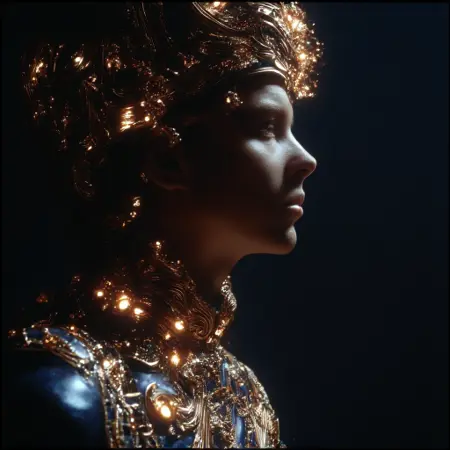 它将发光的有机科技融合体、空灵的氛围与戏剧性的明暗对比光影编织成情感共鸣的场景,在奇幻、科幻与诗意现实主义之间游走。