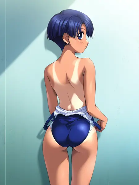 kitagawa_Hikaru(Ponz), 1girl, solo, 蓝发, 短发, 蓝眼, 胸部,