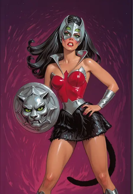 猫のアントロや関連キャラクターは、Thundercatianな特徴を帯びます。これを修正するには、ネガティブプロンプトで「Thundercats」と指定してください。シリーズやジャンルタグを選択的にプロンプトまたはネガティブプロンプトに含めることで、特定のスタイルを調整しやすくなります。