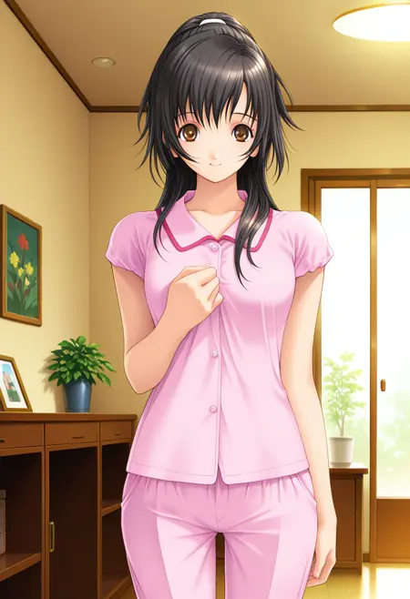 - otohaww, 茶色の目, たれ目, 黒髪, 長髪, ポニーテール, 小さな胸,