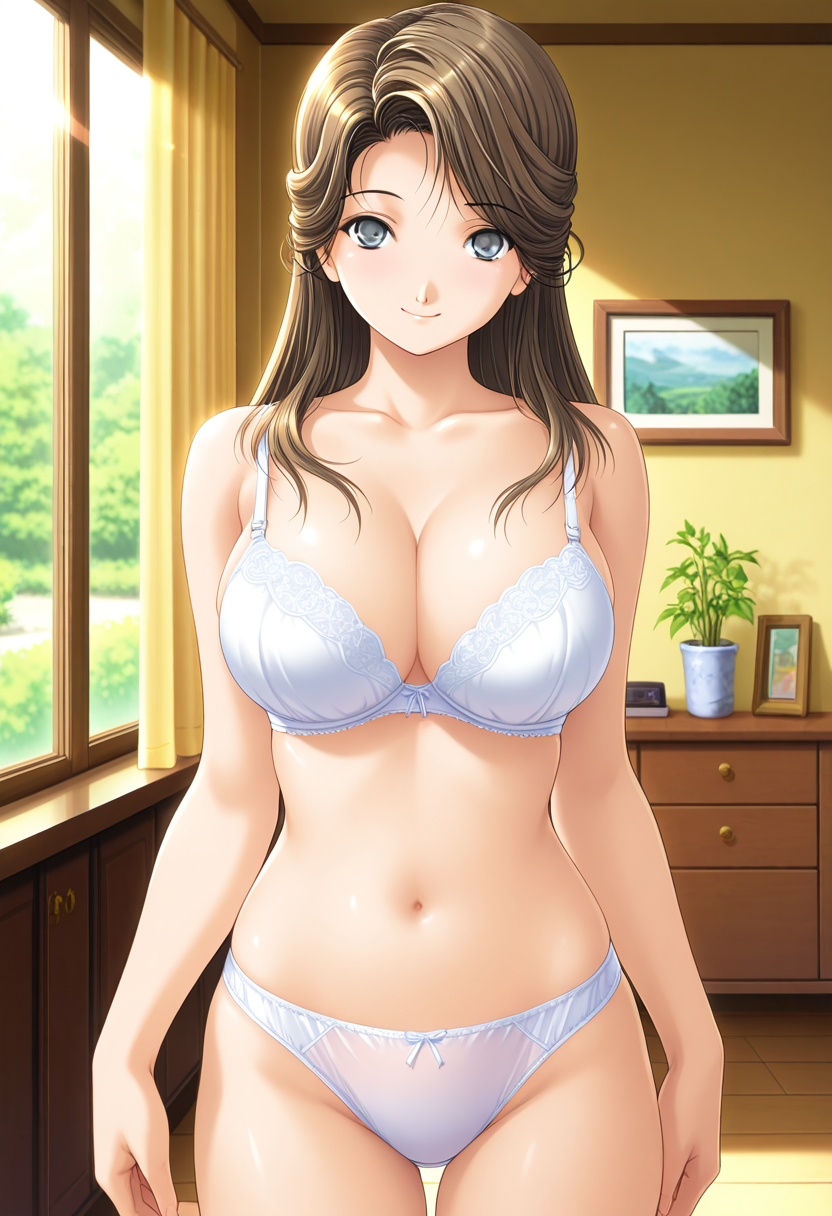 - kaoriww, 成熟女性, 灰色眼睛, 棕色头发, 长发, 不对称刘海, 半盘发,