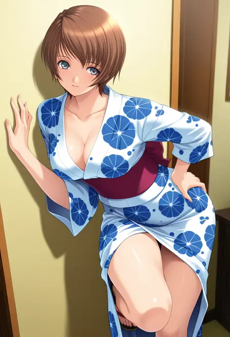 - yukiww, 成熟した女性, 灰色の目, 円形の目, 茶色の髪, 短い髪, 非対称な前髪