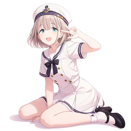 blonde hair, long hair, wavy hair, asahigyaru, hairclip, blue bowtie, plaid bowtie, loose bowtie, white dress shirt, open collar, bead bracelet, polka dot scrunchie, blue wrist scrunchie, blue cardigan, cardigan around waist, blue skirt, plaid skirt, pleated skirt,
