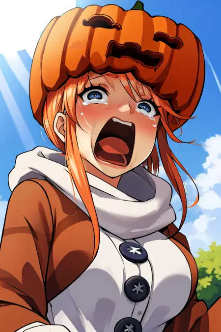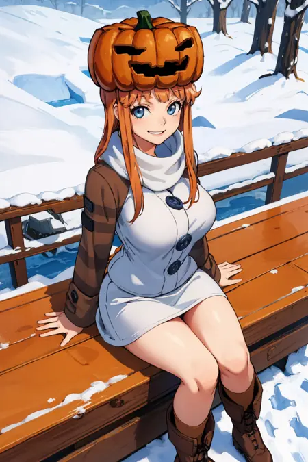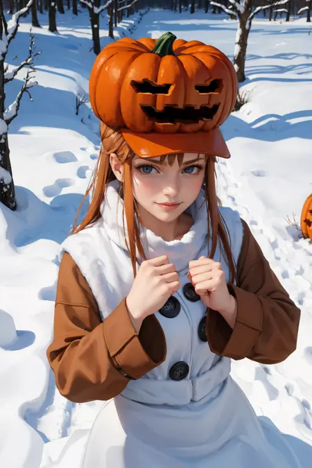 • 그녀의 대표적인 외모를 표현하려면 "호박 모자, 코트, 흰 치마, 단추"를 추가하세요.