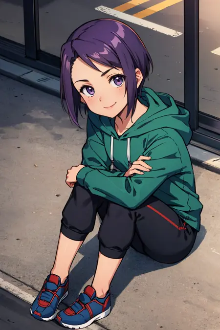 "보라색 머리, 단발"은 일관성을 높이는 데 도움이 됩니다.