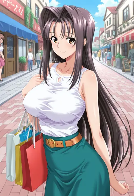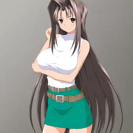 chisato-san, brown hair, very long hair, hair intakes, brown eyes, large breasts,