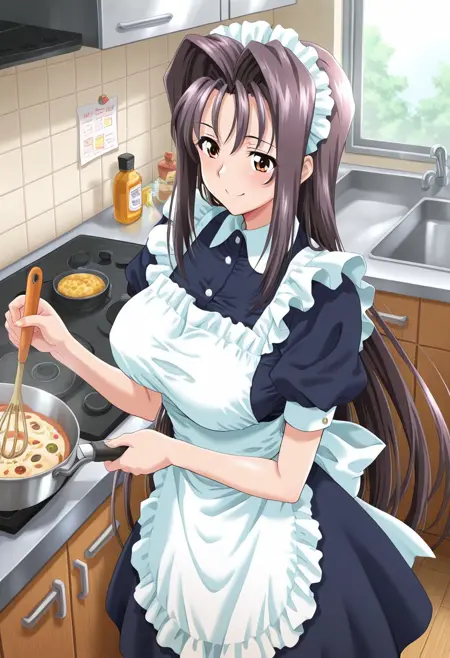 chisato-maid, black dress, white apron, maid headdress,