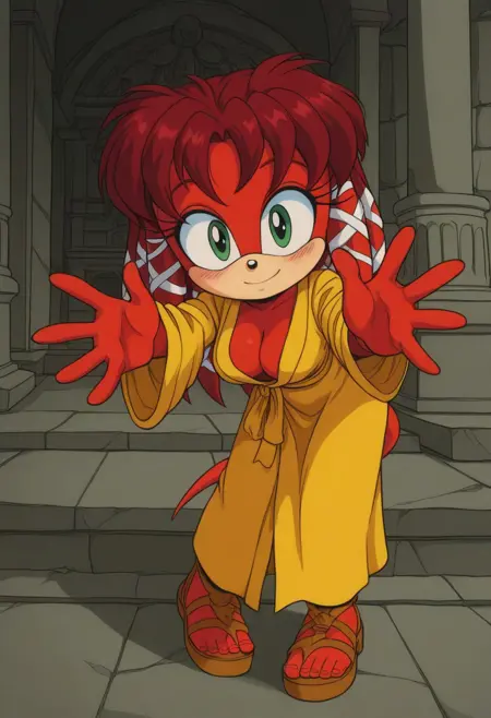 Lara-Le is a character that appears in the Sonic the Hedgehog comic series and its spin-offs published by Archie Comics. She is a mobian echidna and the mother of Knuckles the Echidna and Knecapeon "Kneecaps" Mace the Echidna. She is also the ex-wife of Locke the Echidna and the current wife of Wynmacher.