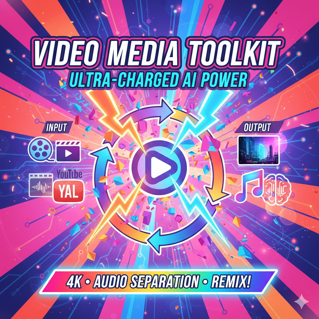 Elevate your AI art pipeline with Video Media Toolkit v6, a free, open-source desktop utility designed for Stable Diffusion creators, trainers, and video-to-image enthusiasts. This all-in-one Windows app handles media ingestion, breakdown, enhancement, and reassembly—perfect for sourcing high-quality frames from YouTube/Reddit videos for LoRA training, isolating vocals/instruments for audio-reactive generations, or upscaling low-res assets to feed into ComfyUI or Automatic1111 workflows.
