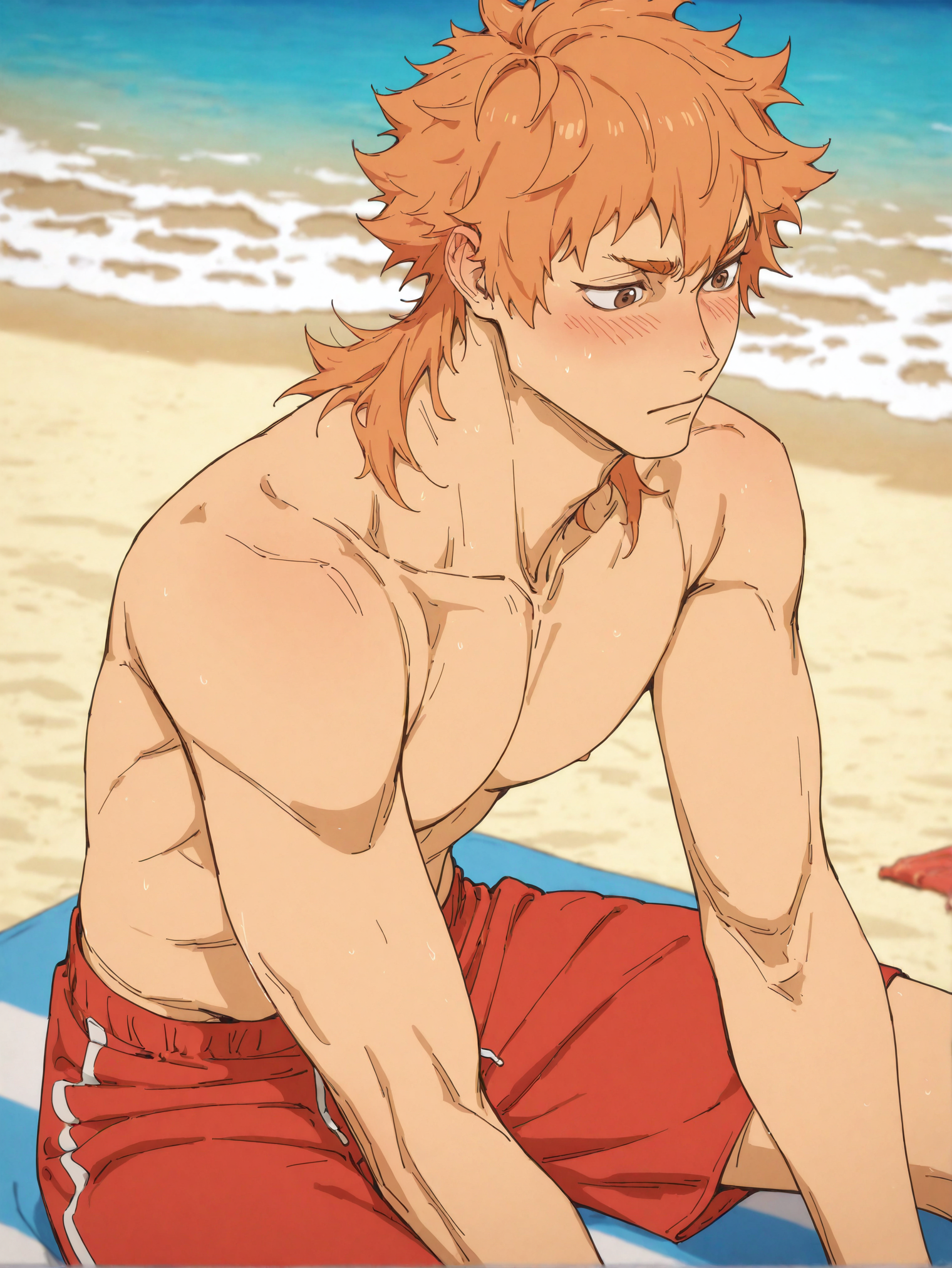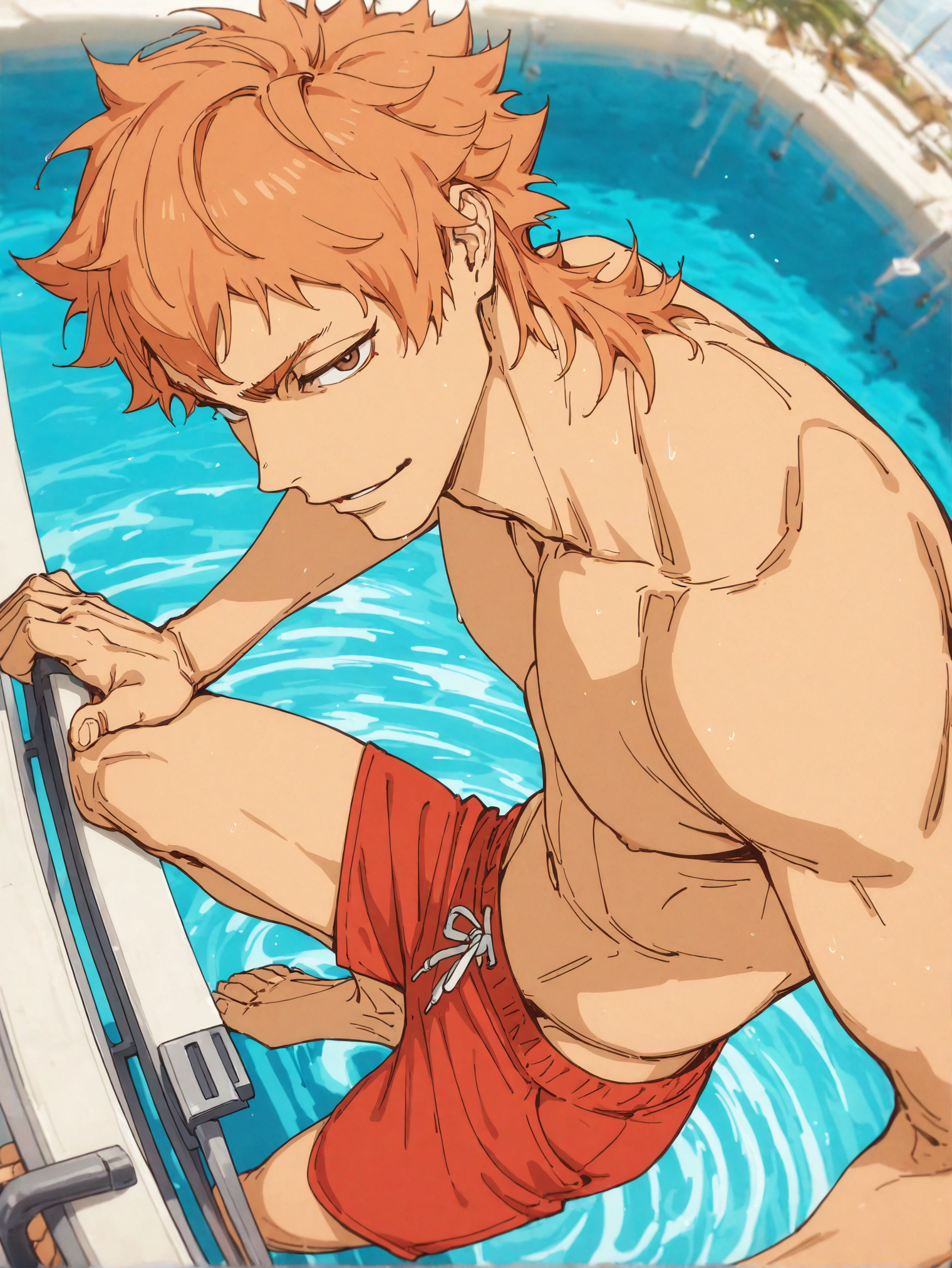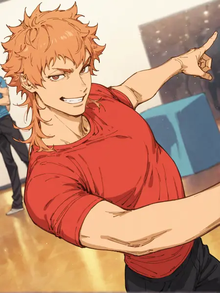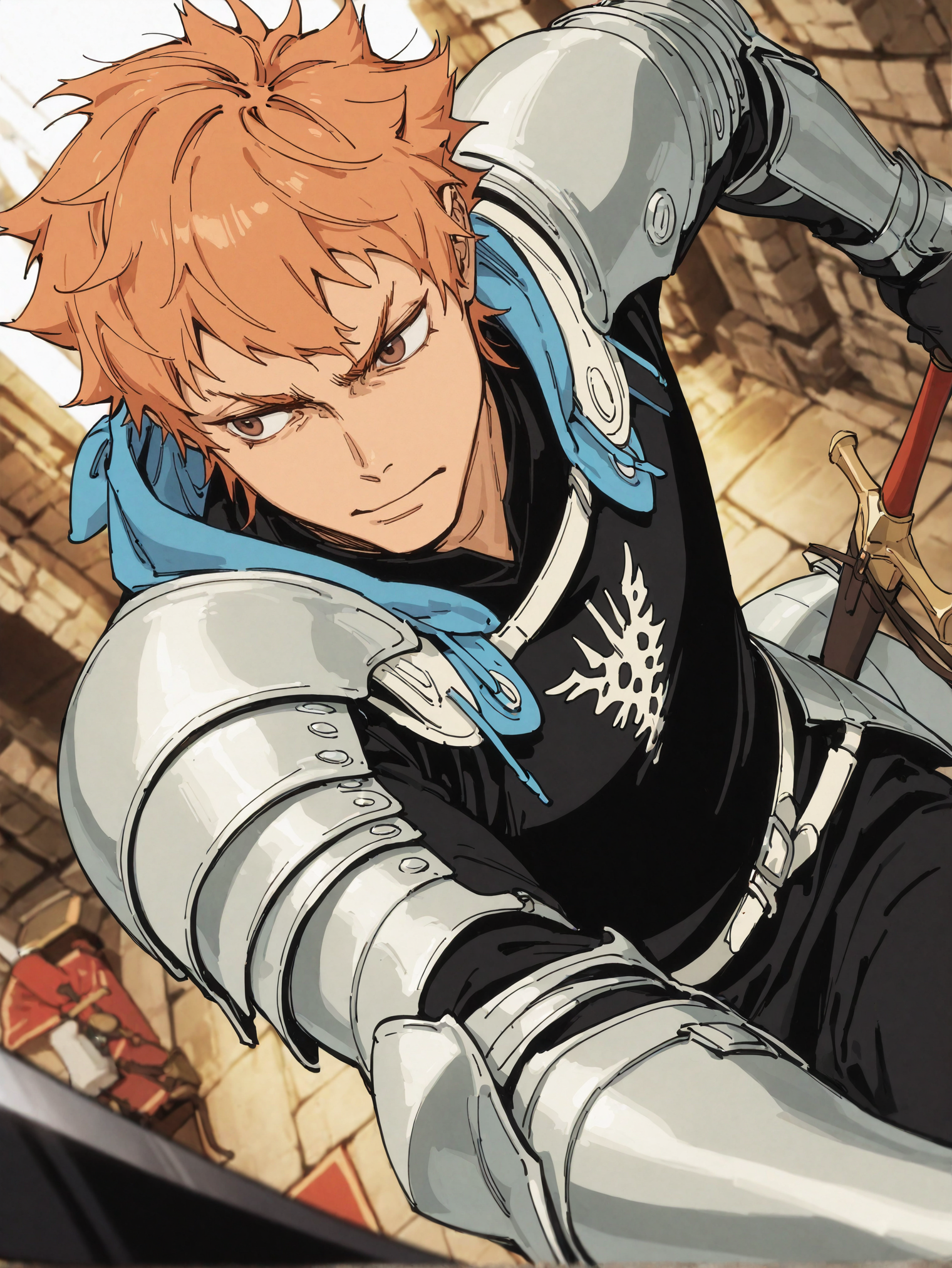 Akagi Gaju、オレンジ色の髪、乱れた髪、茶色い目、1人の少年、男性を中心に、シングル、