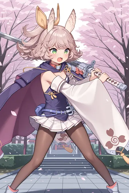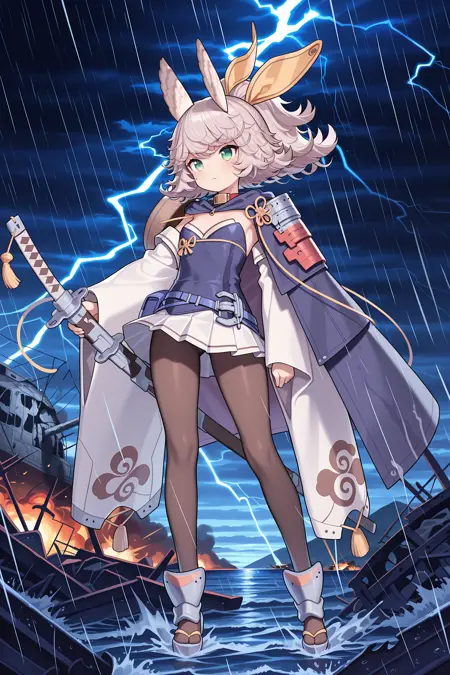 Illustrious model for kitakaze. Sword accuracy is pretty low but with the right prompts can get something close. Some extra hair prompts can try to calm her hair fluffyness if that's what you want.