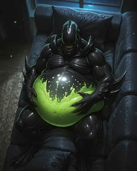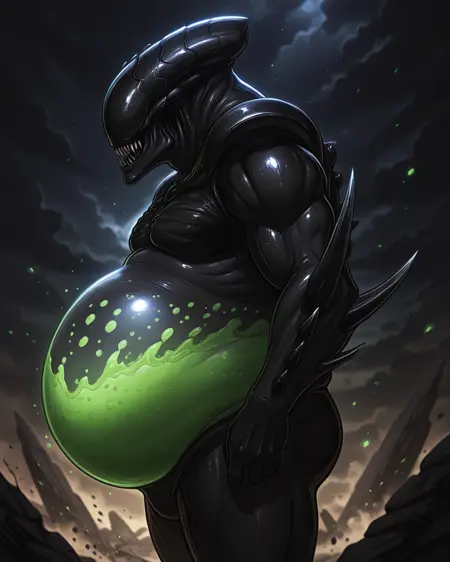 **ОС (Original Character)**Zenoglobe. He was an ordinary, unremarkable xenomorph, one of many in his hive, whose life cycle consisted of hunting, growing, and serving the Queen. During one of his forays onto a devastated alien planet, Zenoglobe stumbled upon a strange, depressurized container. A bright green, viscous substance pulsated within, emitting an unusual odor. Driven by instinctive curiosity and hunger, Zenoglobe devoured the entire liquid.