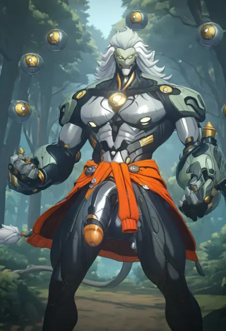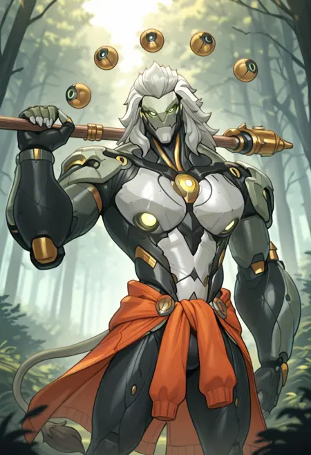Trigger words : Banyue, Gray hair, robot, mechanical parts, floating orbs