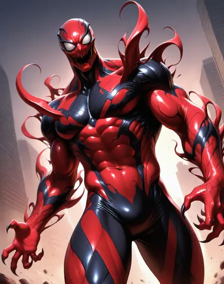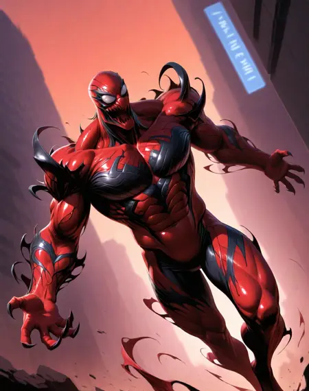 This is an Illustrious style lora for the character Carnage from Marvel Comics. This version is the style of Carnage is from a time when he got the powers of the Silver Surfer. There were very few sample pictures for this and I ended up using art sources.