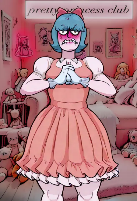 이 작품은 온라인 캐릭터를 바탕으로 만들어졌습니다. 소재의 성격상, 저는 제 생성물에... 말하자면 '문제적이고 비적절한' 목걸이나 문신을 추가하지 않았지만, 만약 여러분이 개인적인 즐거움을 위해 추가하고 싶으시다면 자유롭게 하셔도 됩니다. (원하신다면 개인적으로 저에게 공유해 주세요. 이 캐릭터를 이용해 사람들이 obvious한 것 외에 어떤 것을 할지 궁금하거든요 ;)