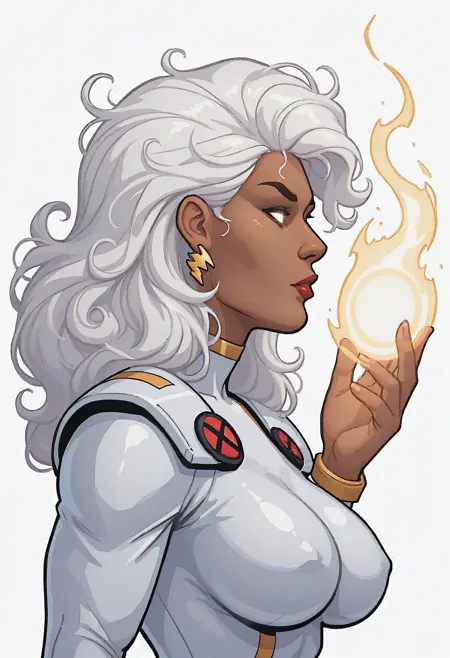奥罗罗·芒罗是一位强大的变种人,拥有操控天气的能力,通常被称为宏伟的风行者“风暴”。幼年时,她的家园因飞机失事而被摧毁,父母双亡,年轻的奥罗罗在阿赫迈德·埃尔·吉巴尔的指导下,成为开罗街头的小偷。青少年时期,她游历非洲,最终抵达塞伦盖蒂平原,随后定居于肯尼亚的乌祖里部落,因利用能力缓解干旱而被当地人尊奉为女神。后来,查尔斯·泽维尔教授找到她,奥罗罗被赋予“风暴”之名,加入他的X战警团队——一个致力于实现人类与变种人和平共处的变种人组织。