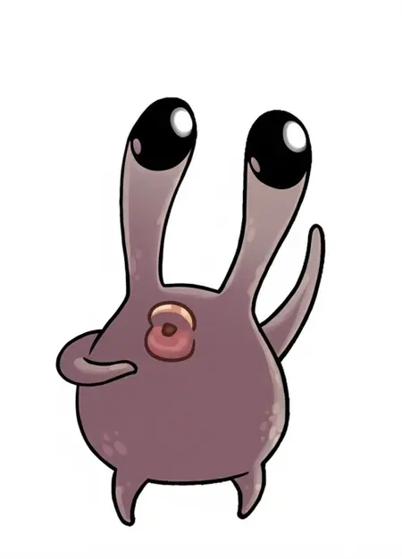 no humans, big eyes, black sclera, eye stalks, glossy eyes, big lips, small arms, small legs