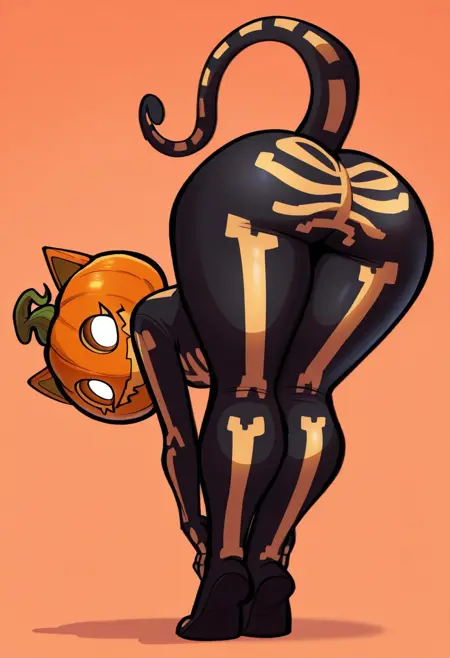 현재即将到来的Fortnitemares 스킨용 LoRA로, 머리에 호박을 올린 고양이 소녀입니다.