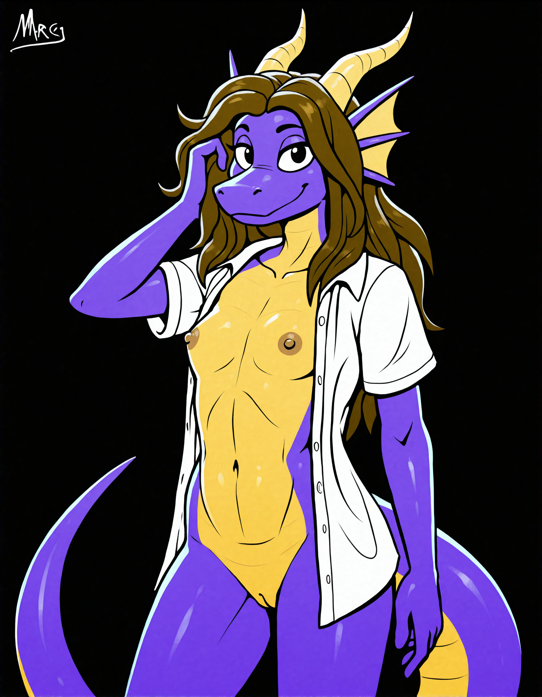 Unsure if the style fully stuck properly, the character tag 'mrg' is for the character Morg as a supplement to aid in generating her for the requestor, but I'm unsure if the style tag of 'ntymg' applies on it's own strong enough at a strength of 1, so with or without the combination you'll need to likely up the strength. The art of Morg was kind of scattered through the 'eras' of the artists work as they developed in skill, and I think that might fight the bulk of the dataset which is of their latest art that featured Morg less as I didn't notice it popping up in the ~80 or so recent images.