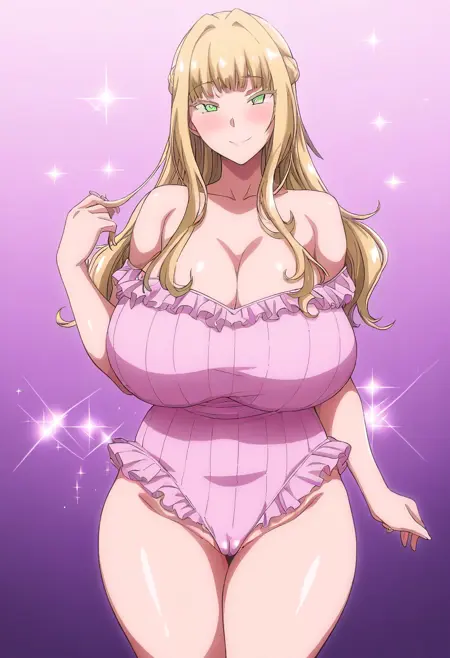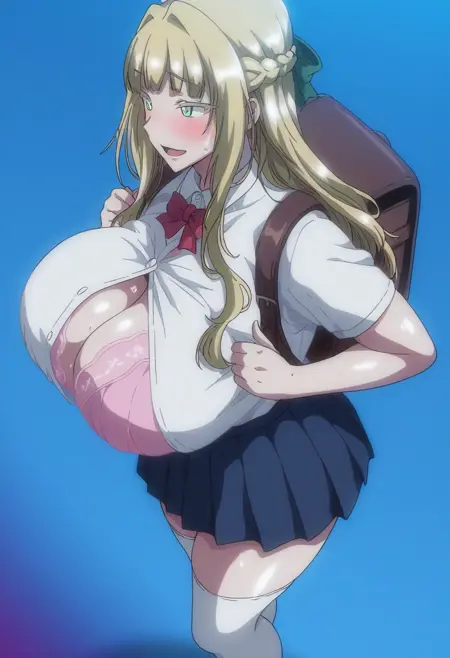 richter louise, 1girl, blonde hair, long hair, bangs, braid, french braid, sidelocks, green eyes, colored eyelashes,large breasts, breasts,