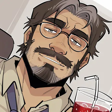 WilliamShroom, brown hair, grey eyes, glasses, thick eyebrows, facial hair, hairy, mature male