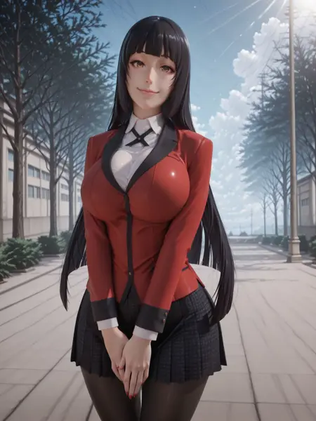 Main Prompt: 1girl, solo, curvy, very long hair, blunt bangs, hime cut, brown eyes, red nails, large breasts, wide hips,