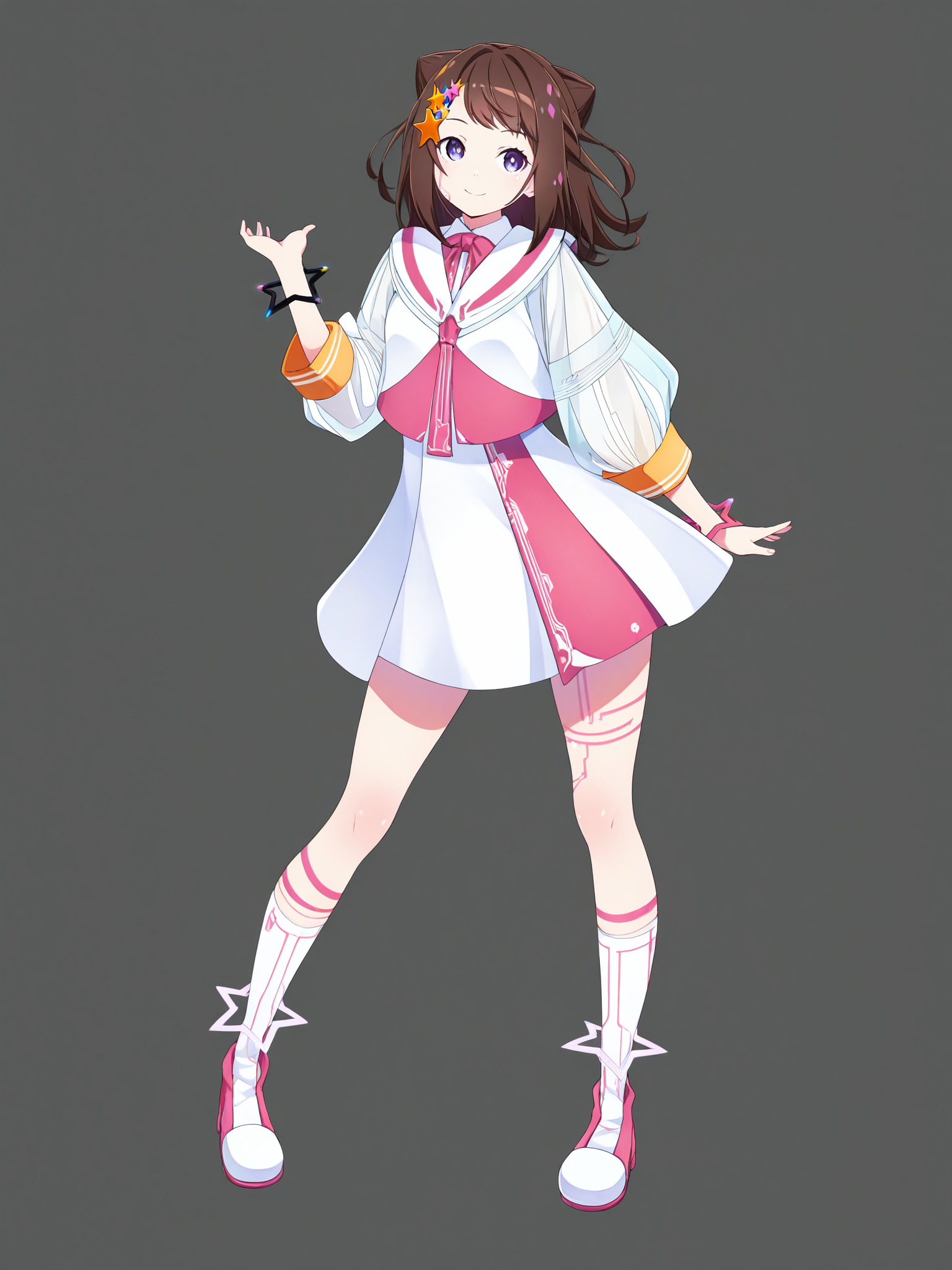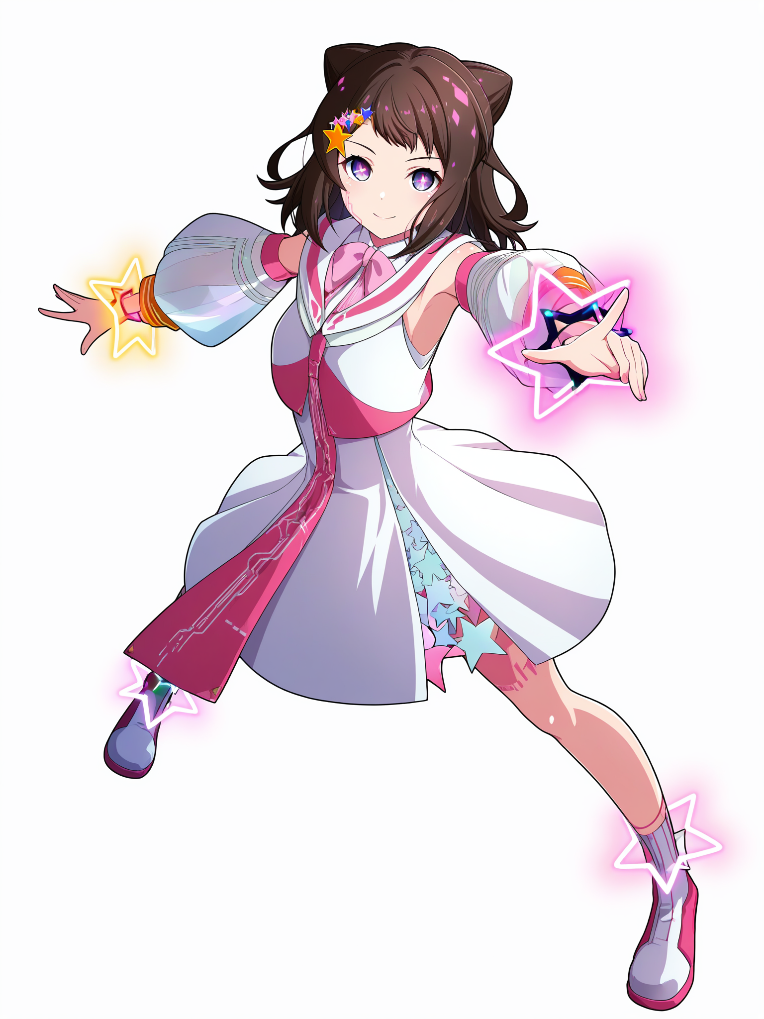 POPY,brown hair,purple eyes,star hair ornament,hair bun,