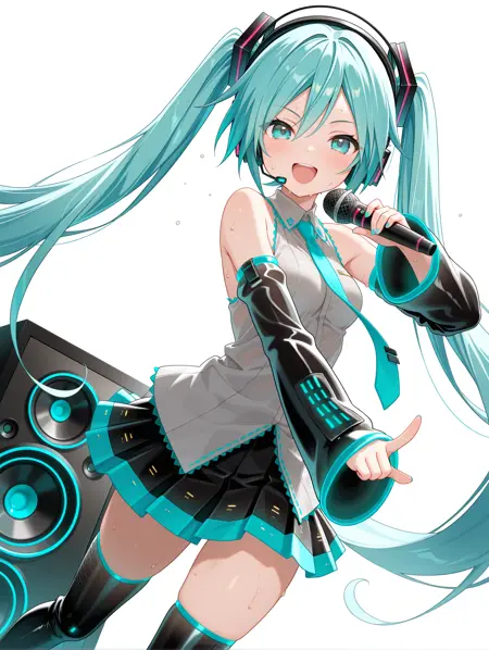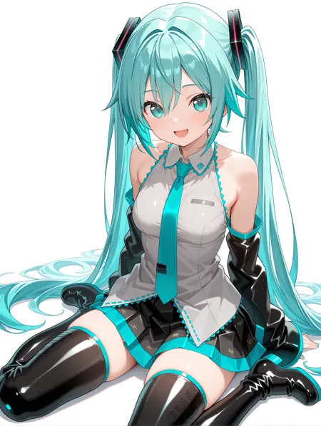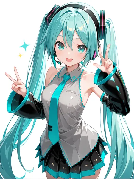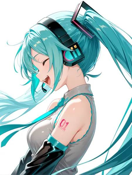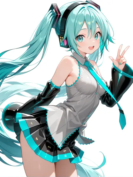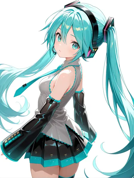 触发词・m_a_miku, 水色头发, 双马尾, 极长发, 水色眼睛,