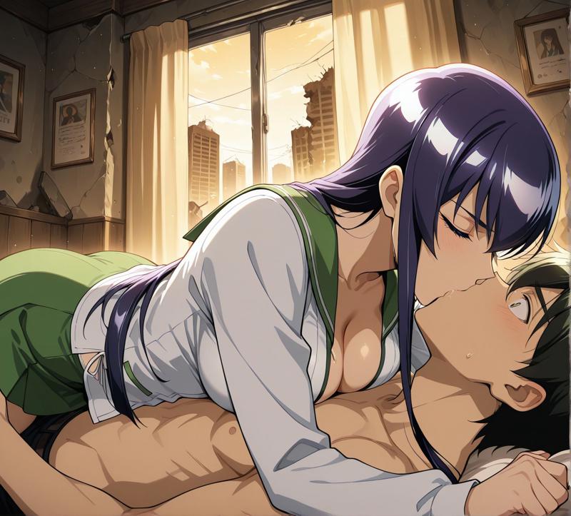 1boy,1girl, hetero, sitting, kiss, fingering,nipple tweak,