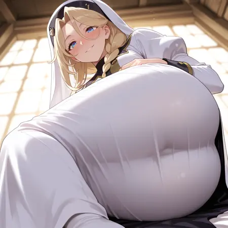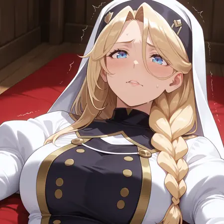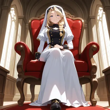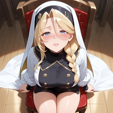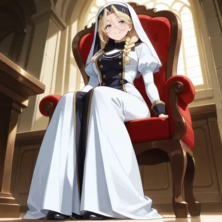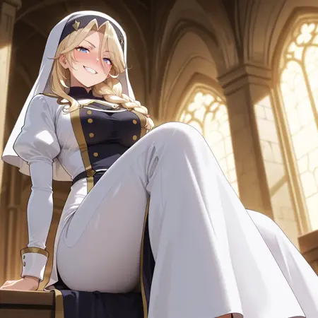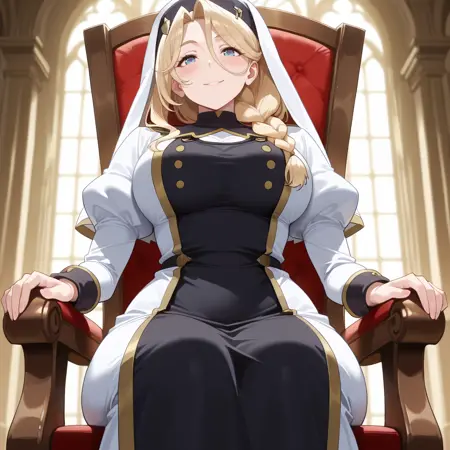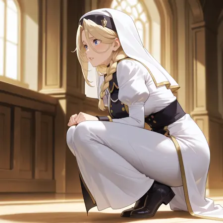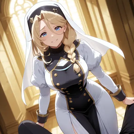 WMRihya, 파란 눈, 금발, 긴 머리카락, 수도복, 단일 땋은 머리, 어깨에 걸린 머리카락, 눈 사이의 머리카락, 갈라진 앞머리,