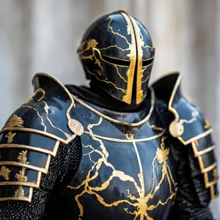 이 효과는 도자기에 국한되지 않고 갑옷, 초상화, 동물, 풍경까지 확장되어 복원 과정에서의 회복력, 불완전함, 우아함을 강조합니다.