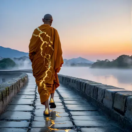금으로 된 수선의 이음새가 균열을 아름다움으로 변환합니다.