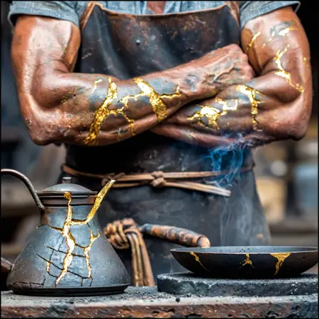 킨츠기란 금으로 깨진 도기를 수리하여 균열을 숨기지 않고 강조하는 일본의 예술입니다.