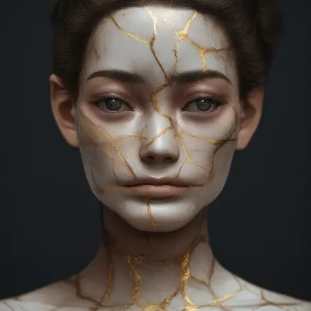 이 효과는 도자기에 국한되지 않고 갑옷, 초상화, 동물, 풍경까지 확장되어 복원 과정에서의 회복력, 불완전함, 우아함을 강조합니다.